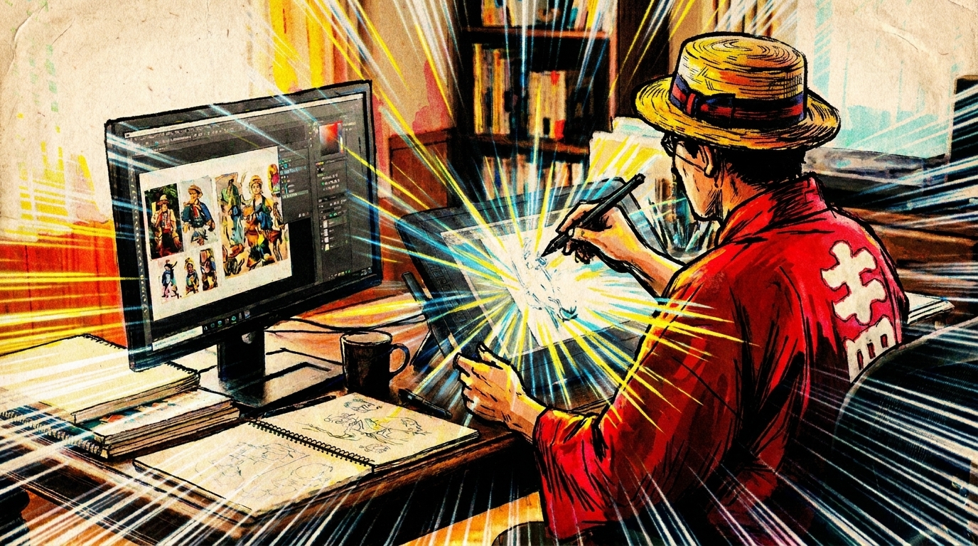 ご要望のヒアリングから、脚本づくり、作画まで、すべてをガンチャン本人が一貫して行う「完全ワンストップ体制」です。