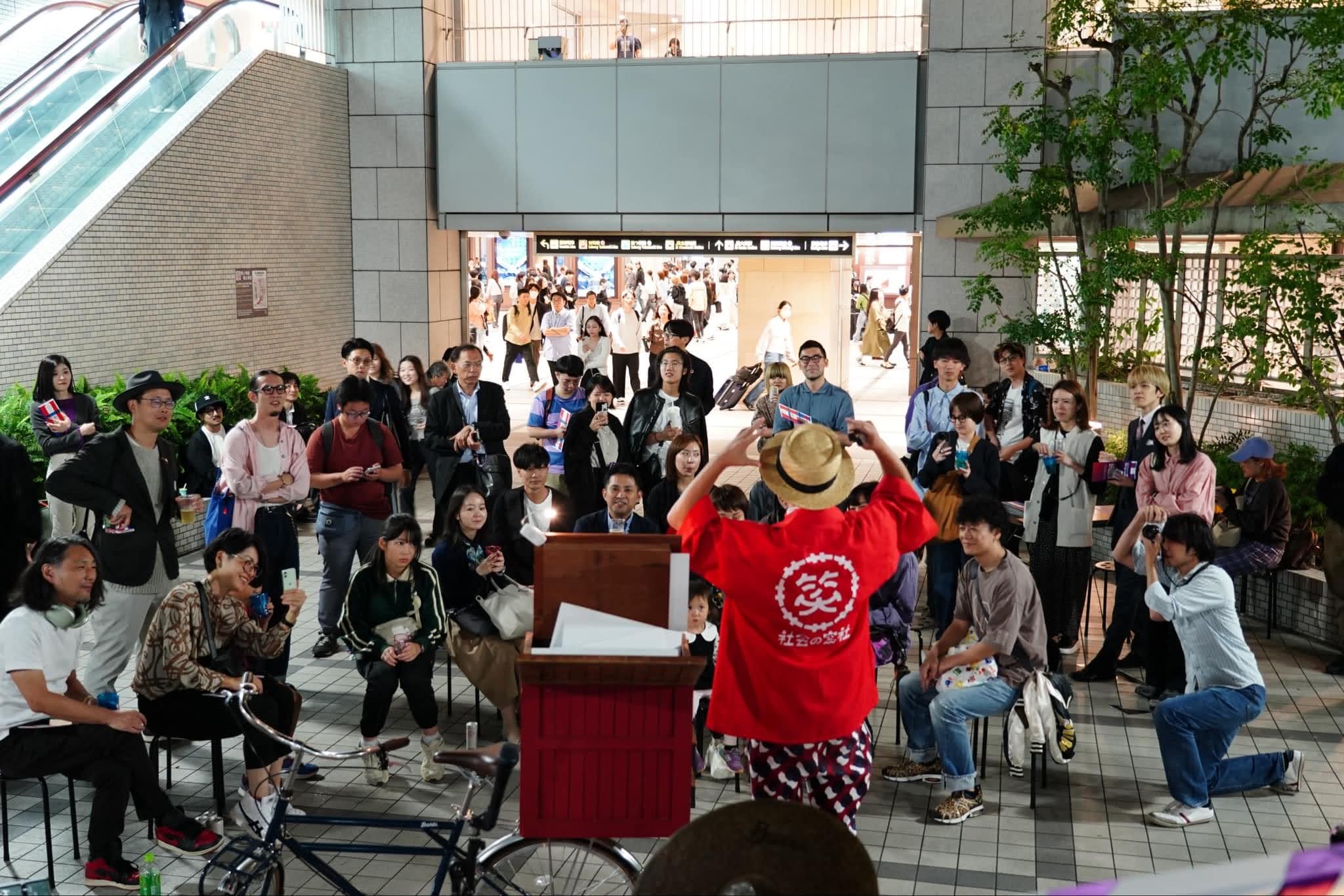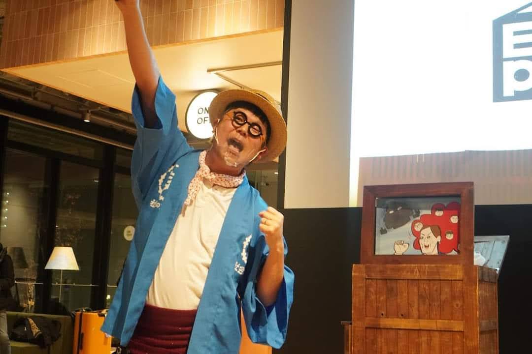 そこでEXPO酒場として『日本全国盛りあげます神輿』チームの当日演出を担当していたんやけど、「そのなかにそれなら【紙芝居】をいれこもう!いいですか?」と紙芝居をいれこむことに。