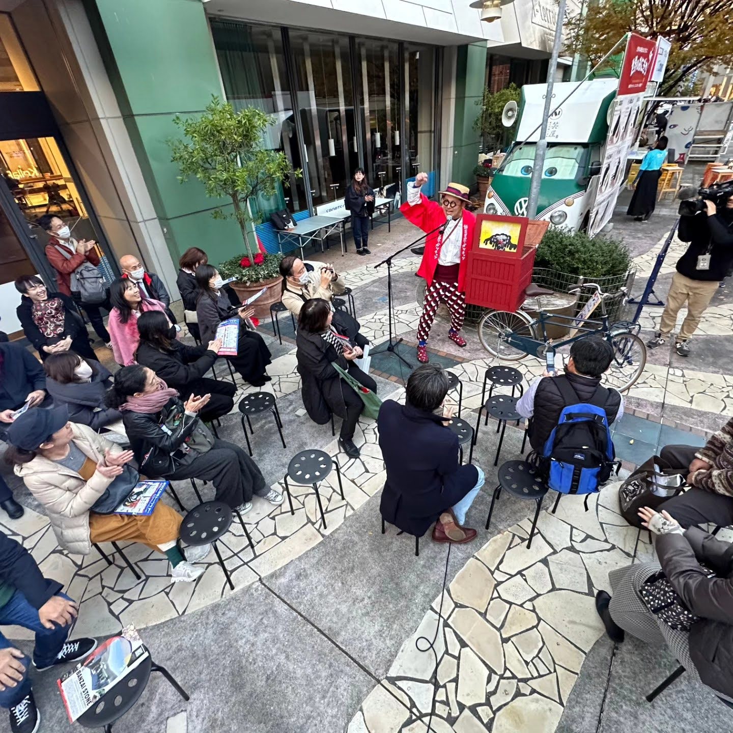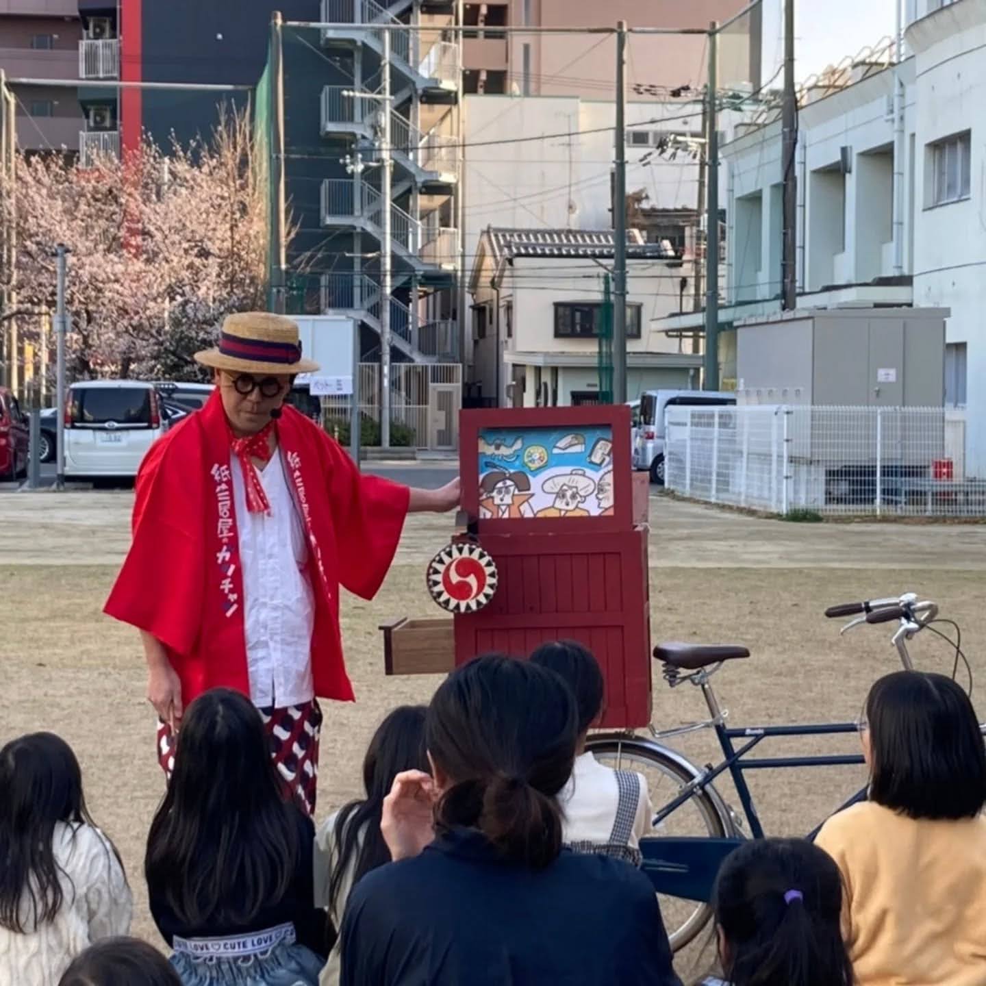 当日急遽良い場所でやらせてもらったり、知り合いもたくさん観にきてもらったり、楽しかった。日本のカルチャー紙芝居。