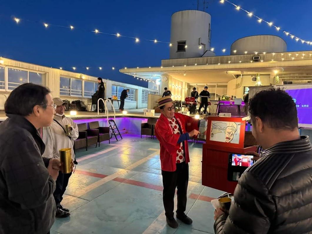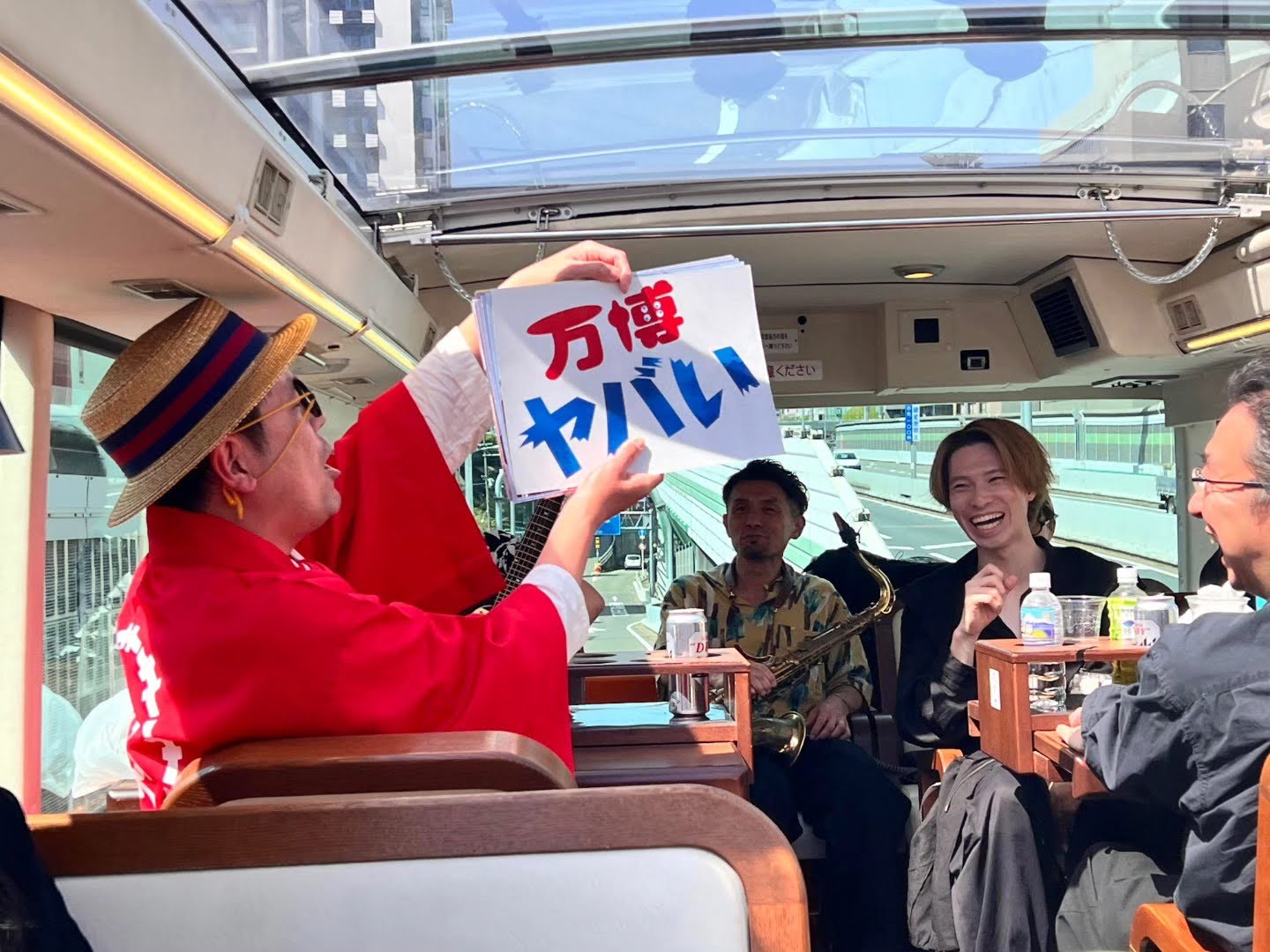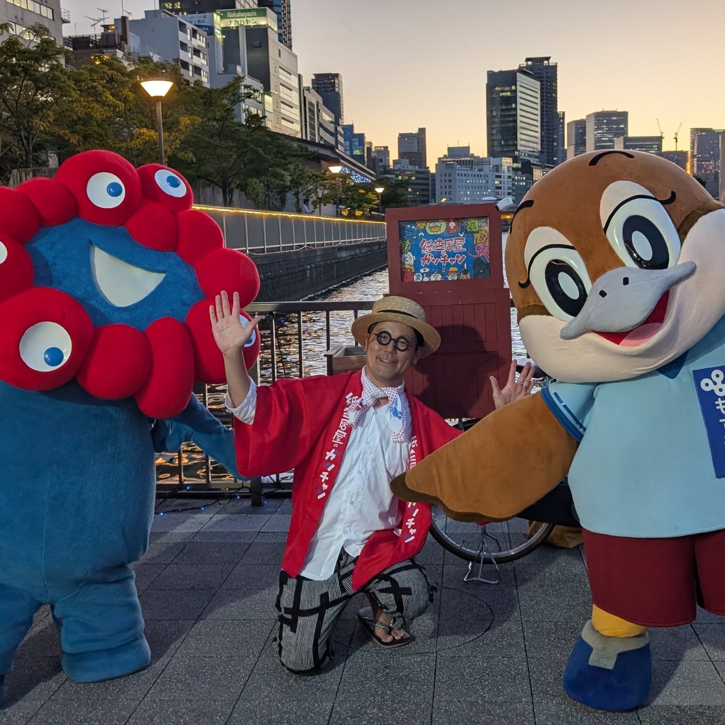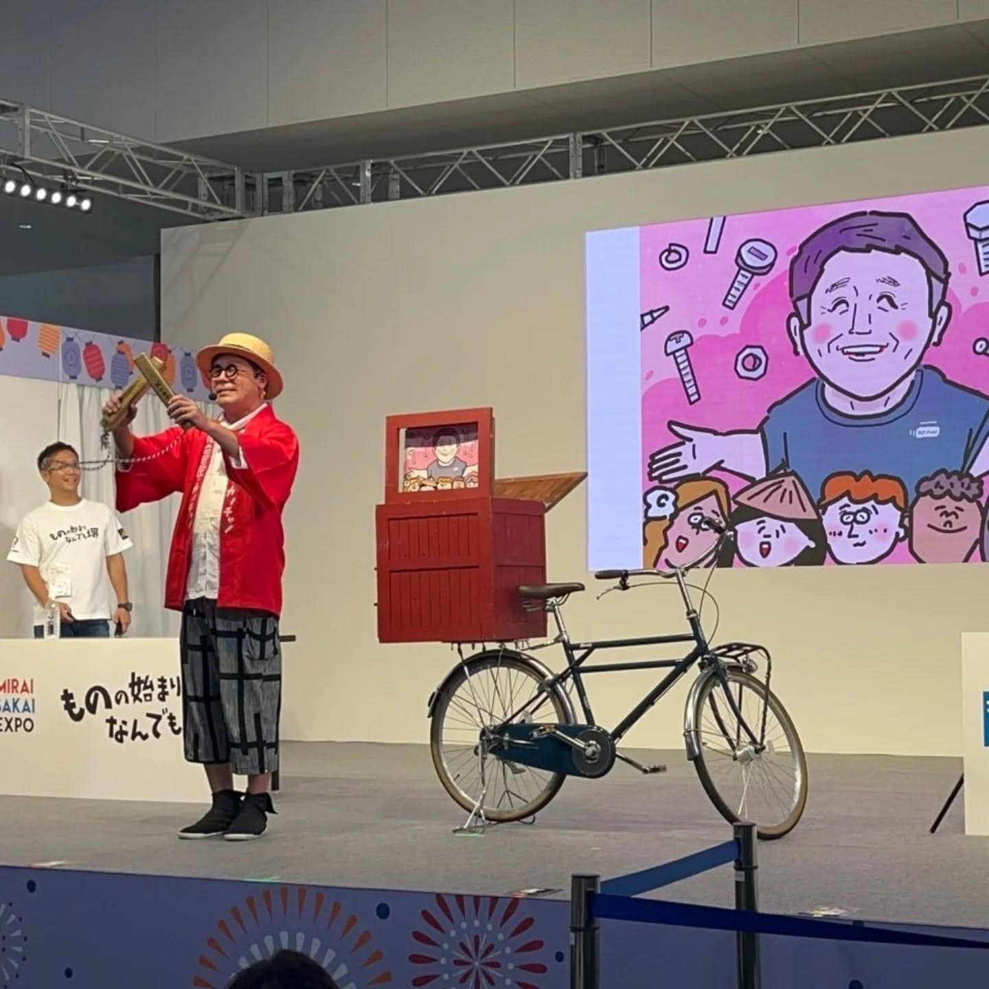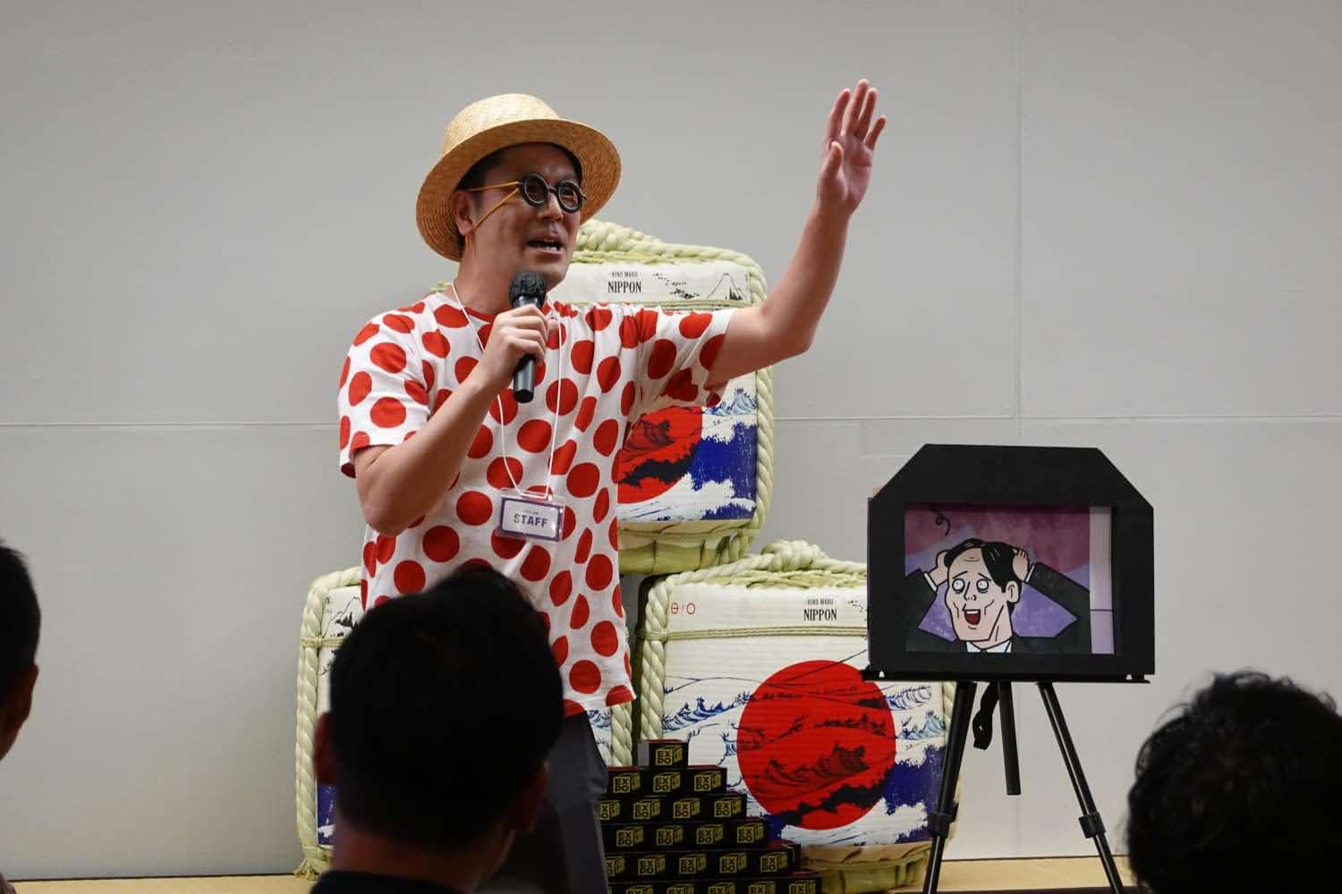 なんでも同会場で昼間は『TEAM EXPO 2025 Meeting』というわりと真面目な会合が行われ、夕方から『つながれ!EXPO大酒場』という流れなので、紙芝居で空気をごちゃ混ぜにしてほしいオファー。得意分野やん。