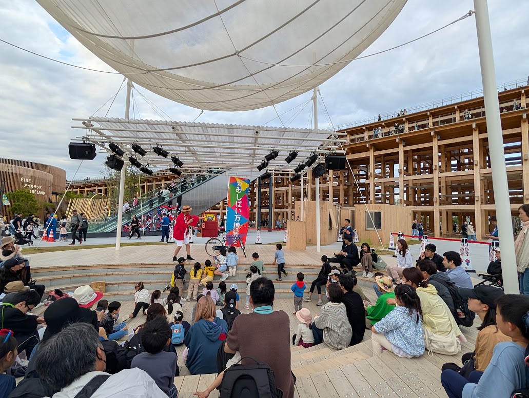わりと近々でのオファーで、午前中は奈良での紙芝居公演が入ってたんやけど、ある程度時間を調整してもらい奈良から夢洲の万博会場へ車でダッシュ。